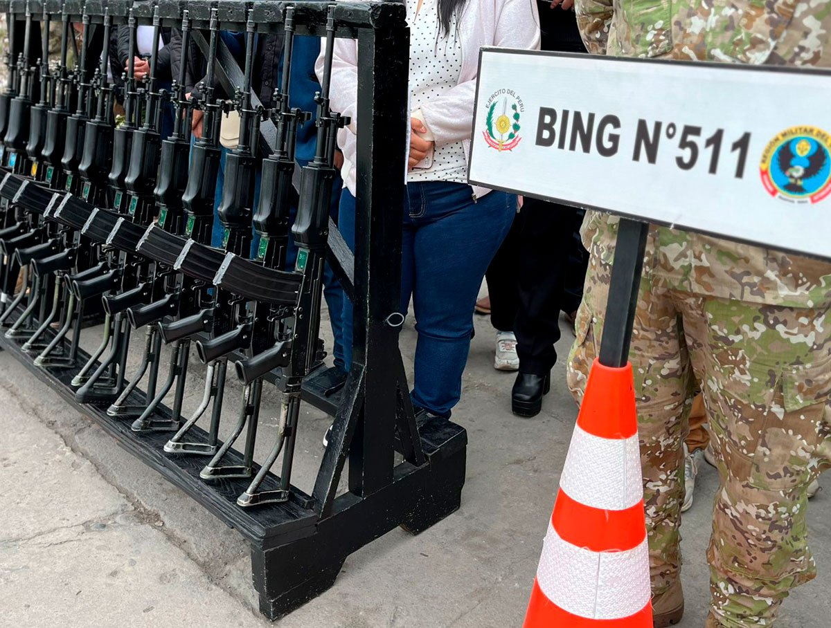 El día 26 de septiembre, en las instalaciones del Fuerte Hoyos Rubios – Cuartel Cáceres, se llevó a cabo la ceremonia de entrega de armas al personal del contingente Julio 25 perteneciente al Batallón de Ingeniería Abastecimiento y Mantenimiento N° 511, unidad orgánica del SINGE. El solemne acto contó con la presencia del General de Brigada Ugaz Bartolo Orlando, así como de los Comandantes de las Unidades, quienes encabezaron la actividad militar que simboliza el compromiso y la responsabilidad asumida por cada soldado en servicio. Asimismo, estuvieron presentes los familiares de los soldados, quienes acompañaron con orgullo y emoción este importante momento en la formación militar de sus hijos, reafirmando los valores de disciplina, honor y patriotismo. Con esta ceremonia, el Btn Ing A/M N° 511, renueva su compromiso de formar soldados íntegros y preparados para contribuir al desarrollo y seguridad de la patria.