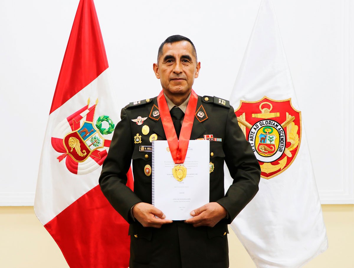 El señor General de Brigada Jefe del Servicio de Ingeniería del Ejército se complace en felicitar , que el Tco Jefe EP Nicolás Bellido Huamaní, por haber sustentado con éxito su tesis y obtuvo el grado académico de Maestro en Gestión del Riesgo de Desastres con el tema: «Rol estratégico de las fuerzas armadas en el marco del objetivo prioritario 05 de la política nacional de gestión del riesgo de desastres al 2050 – caso: Equipamiento de ingeniería para los procesos de preparación y respuesta». El personal militar y civil del SINGE le desea muchos éxitos en esta nueva etapa de su formación profesional. ¡Felicitaciones!
