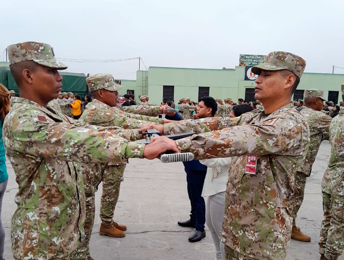 El día viernes 26 de septiembre de 2025, se llevó a cabo en las instalaciones del Cuartel Gálvez – Rímac la solemne ceremonia de entrega de armas al personal de tropa del Servicio Militar Voluntario (SMV), Contingente Julio-2025, perteneciente al Batallón de Transportes N.º 511. Durante el acto, cada integrante del SMV recibió su armamento individual, símbolo del compromiso, la responsabilidad y la vocación de servicio que asumen al incorporarse plenamente a las filas del Ejército del Perú. Este significativo momento marca el inicio de una nueva etapa en la formación militar de los soldados, quienes asumen con orgullo y disciplina la tarea de servir y defender a la Nación. Con esta actividad, el Ejército del Perú reafirma su misión de formar soldados íntegros, preparados y comprometidos con la defensa, la seguridad y el bienestar de nuestra Patria.