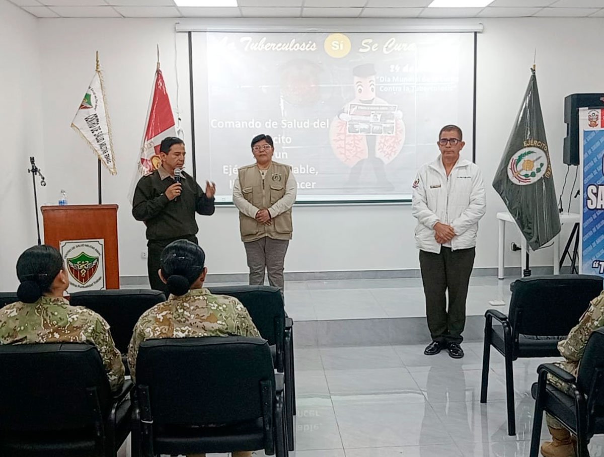 En el marco del Programa de Fortalecimiento de Capacidades del Personal de Sanidad, se llevó a cabo una capacitación especializada sobre Tuberculosis (TBC), dirigida al personal militar enfermero del Batallón de Transportes N.º 511, realizada en las instalaciones del Centro de Salud Militar “Rímac”. La actividad estuvo a cargo de la Licenciada María Teresa Ramos, profesional del Comando de Salud del Ejército (COSALE), quien abordó aspectos esenciales relacionados con la prevención, diagnóstico temprano, tratamiento y medidas de control de la TBC en el ámbito militar. El objetivo de esta jornada fue reforzar los conocimientos técnicos y prácticos del personal de sanidad, asegurando una atención oportuna y de calidad a la tropa, y contribuyendo al fortalecimiento de la salud integral en nuestro Batallón.