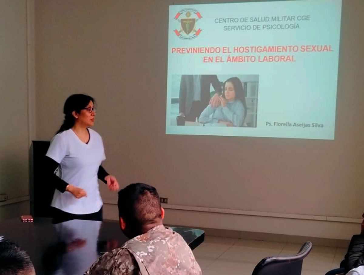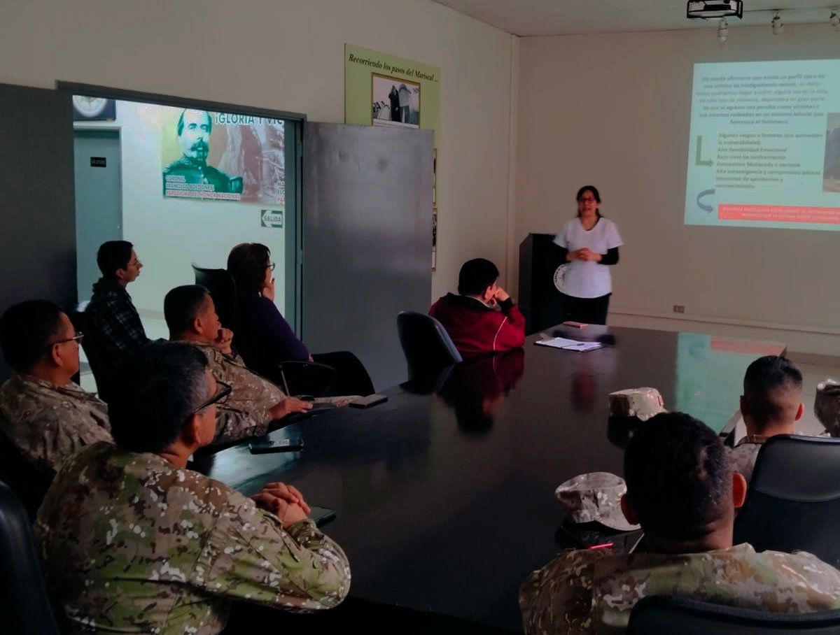 El día jueves 16 de octubre del presente año, el Servicio de Transportes del Ejército (STRASPE) llevó a cabo una charla informativa titulada “Previniendo el hostigamiento sexual en el ámbito laboral”, dirigida al personal militar y civil de la unidad. La exposición estuvo a cargo de la Lic. Fiorella Asejias, profesional del Policlínico Militar del Comando General del Ejército, quien abordó temas relacionados con la identificación, prevención y denuncia de situaciones de hostigamiento sexual en el entorno laboral. Esta actividad forma parte de las acciones permanentes que impulsa el STRASPE para fortalecer la cultura institucional basada en el respeto, la igualdad y la convivencia armoniosa dentro del Ejército del Perú.