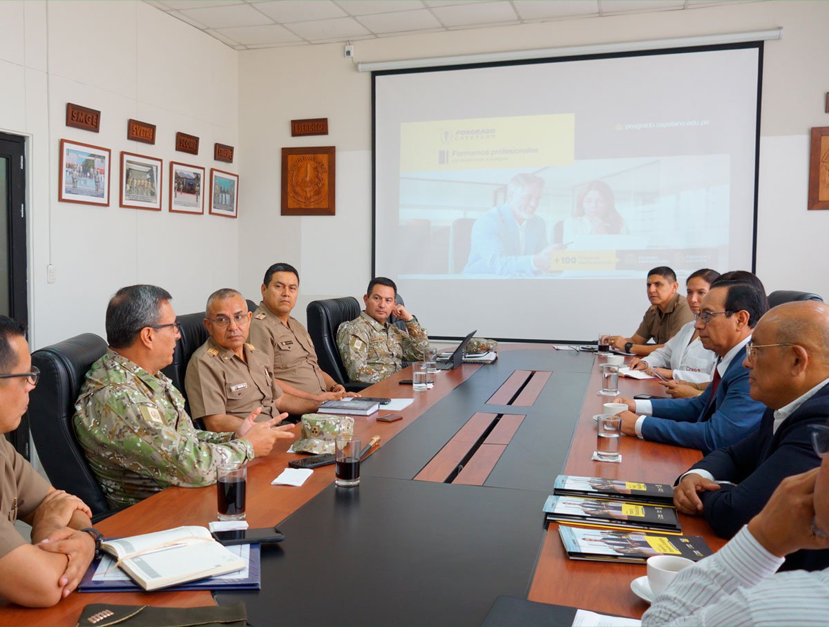 La reunión se desarrolló en la Sala de Acuerdos del COLOGE, ubicada en el Cuartel General del Ejército del Perú, en el distrito de San Borja. Este encuentro reafirma el compromiso de ambas instituciones por promover alianzas estratégicas orientadas al desarrollo académico, profesional e institucional, en beneficio del personal y del fortalecimiento de la gestión institucional.