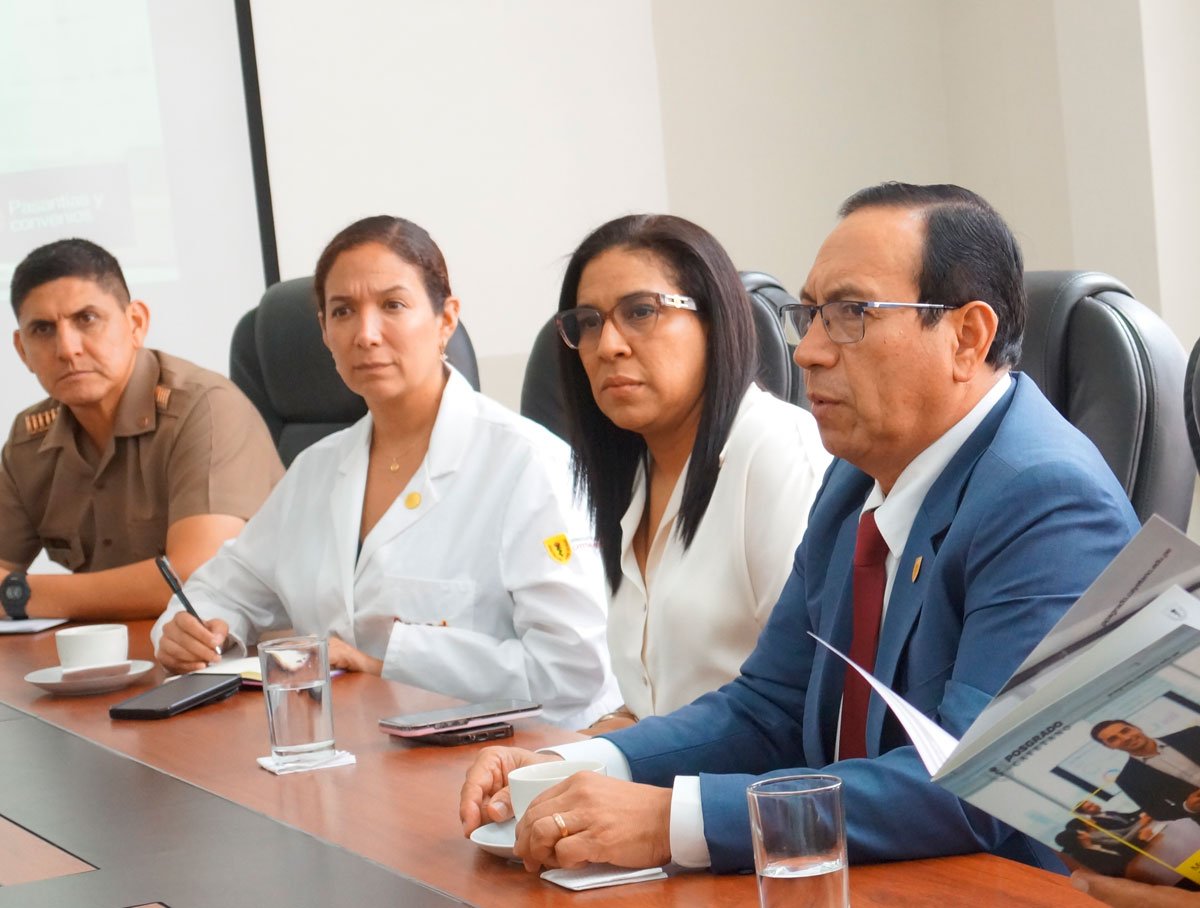 Durante el encuentro participaron la Dra. Flor de María de las Mercedes Calderón Ormeño, Directora Médica de la Clínica CREO; el Mg. Carlos Villa Solís, Director Ejecutivo de la Escuela de Posgrado; el Mg. José Raúl Ñaupari Pineda, Jefe de la Unidad de Gestión de Educación Continua; y la Mg. Elizabeth Aramburú Lazo, Directora de la Dirección Universitaria de Imagen y Comunicación Institucional.
