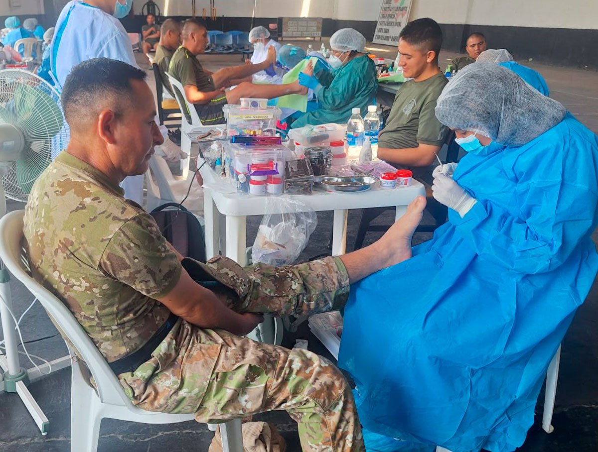 Como parte de las actividades orientadas al bienestar del personal, se desarrolló una jornada de podología gratuita en beneficio de los oficiales, técnicos, suboficiales, personal de tropa y empleados civiles del Batallón de Transportes “SO2 José Cruzado Flores” N.° 511.
