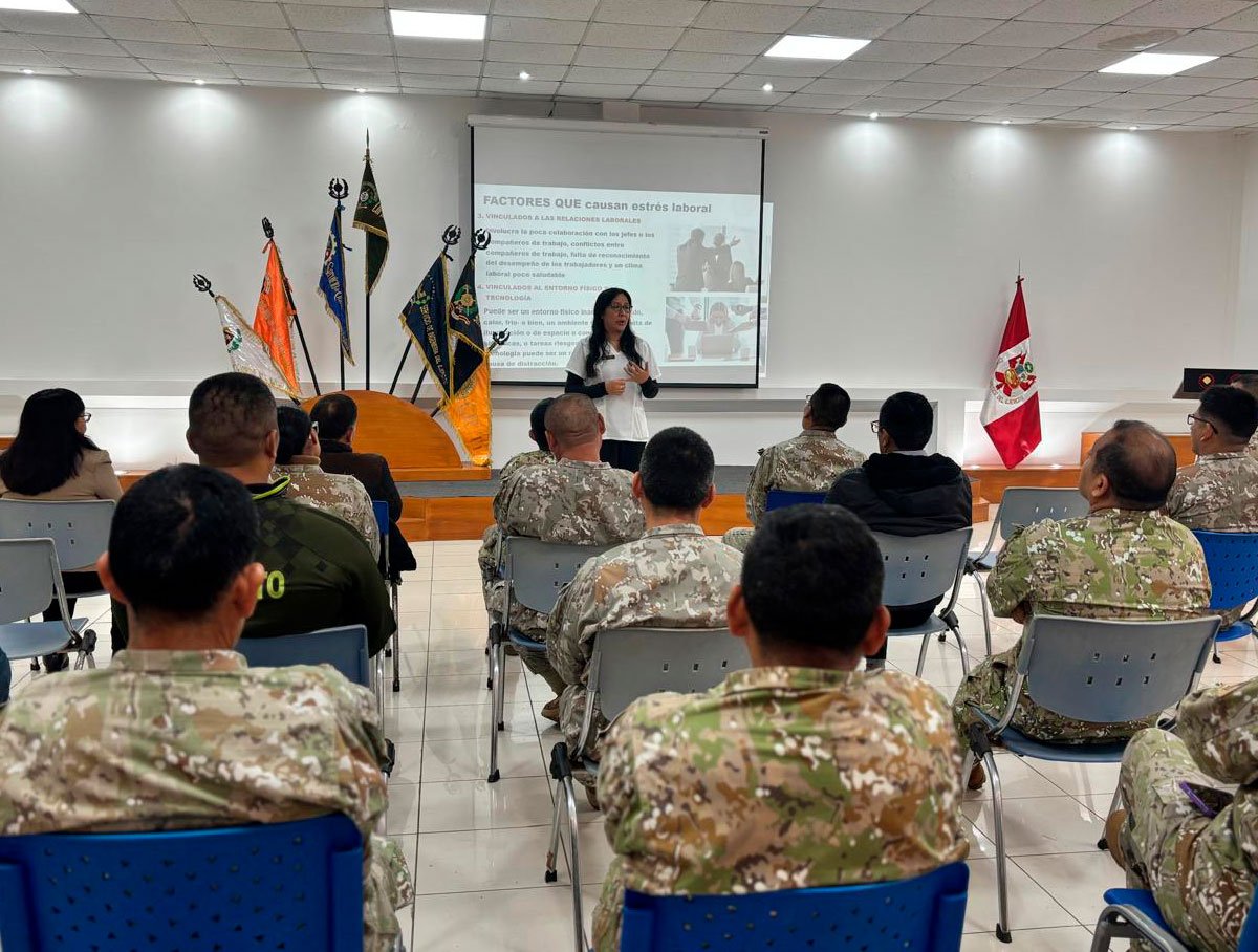 El 03 de julio, en las instalaciones del Estado Mayor del COLOGE, se llevó a cabo con éxito la charla “Manejo del Estrés Laboral y Bienestar Emocional”, impartida por la Psic. Fiorella Aseijas. Esta actividad, dirigida al personal militar y civil, tuvo como objetivo brindar herramientas prácticas para identificar, gestionar y reducir los niveles de estrés en el entorno laboral, promoviendo así la salud mental, el equilibrio emocional y un mejor clima organizacional. Continuamos fortaleciendo espacios laborales más saludables, donde el bienestar del personal sea una prioridad.